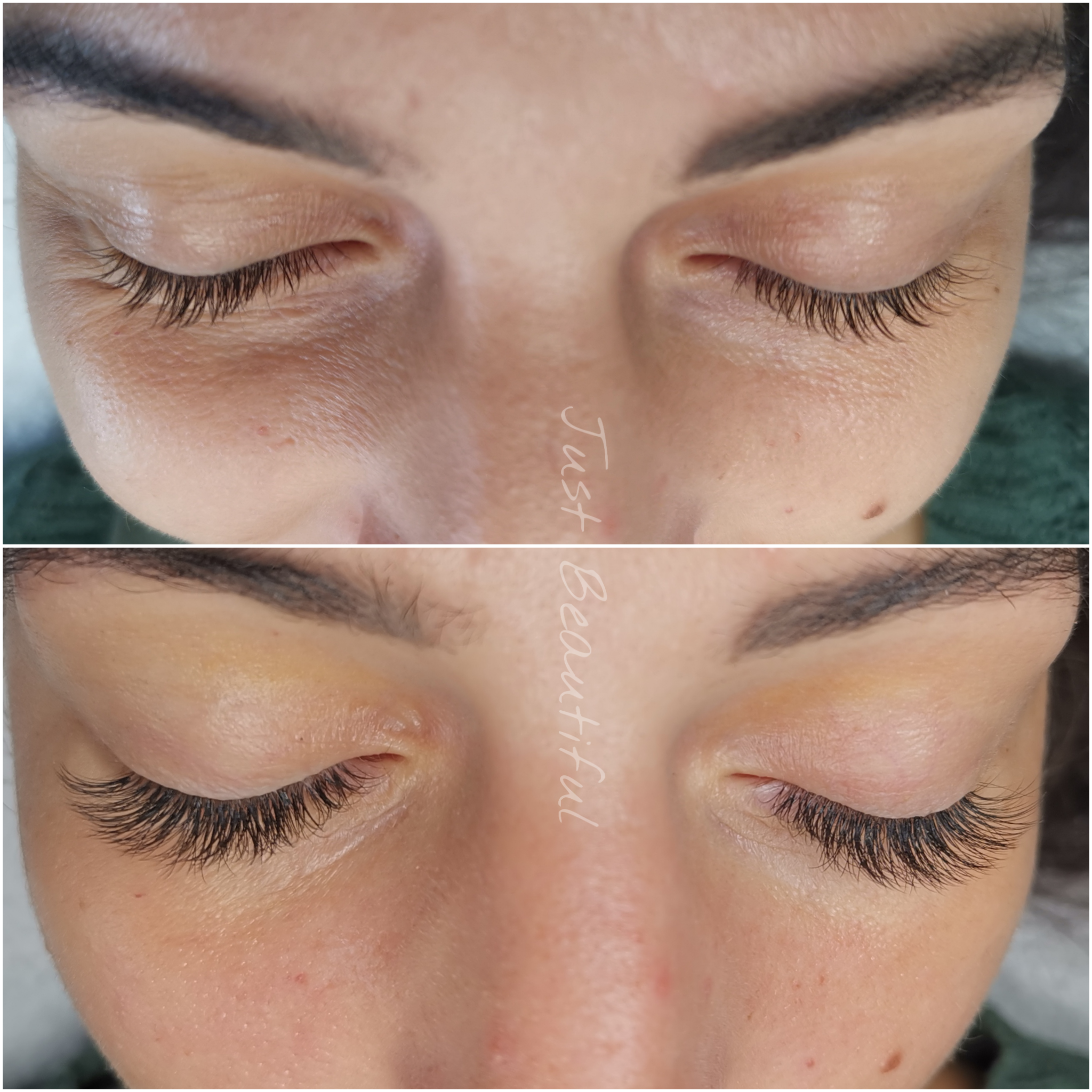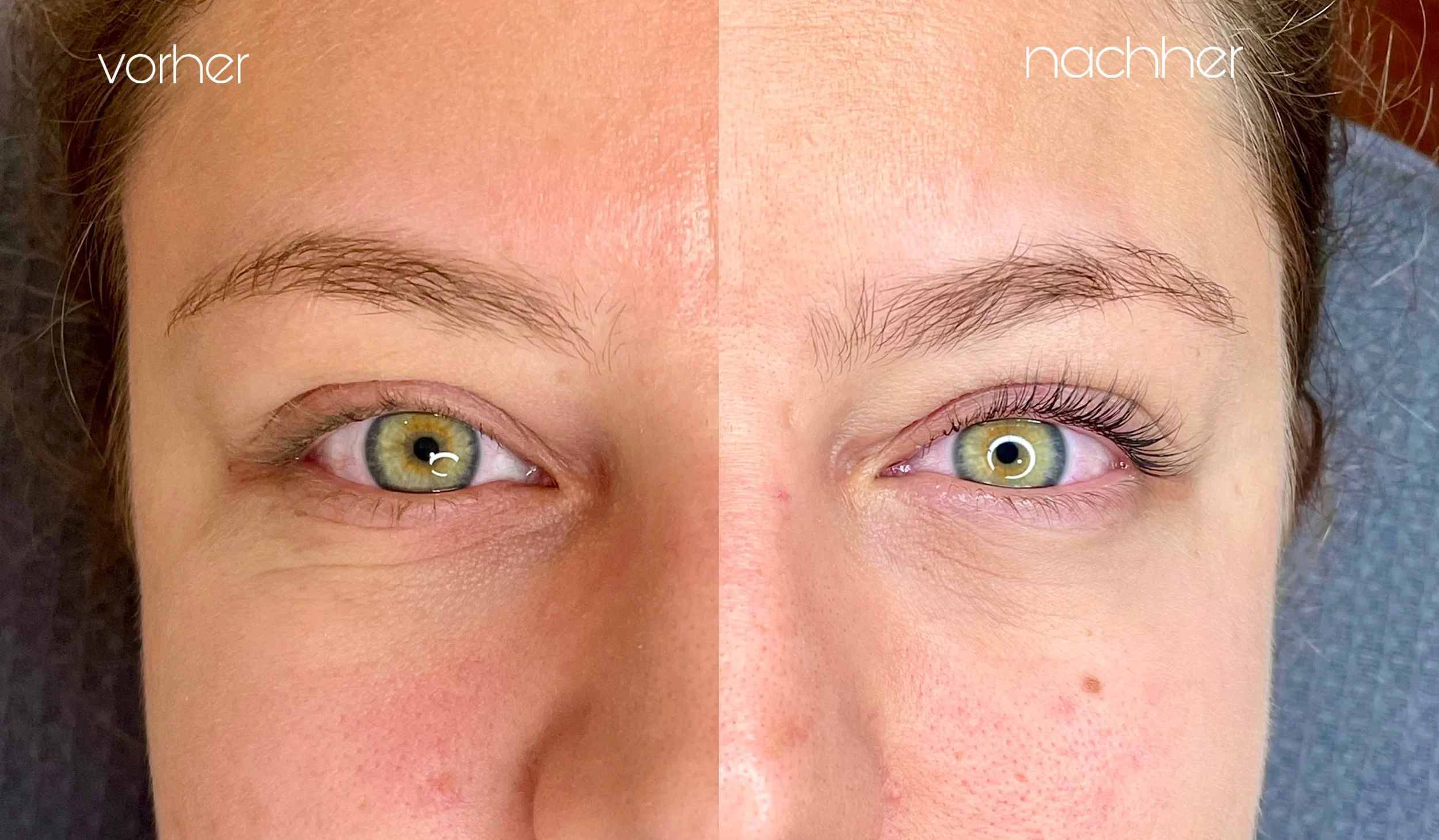 Es ist ein langanhaltenden Effekt ohne künstliche Wimpern. Deine Naturwimpern werden vom Ansatz an geliftet und schwarz gefärbt. Eine natürliche Art seine Wimpern hervorzuheben, sie erscheinen verlängert und nach oben gebogen.