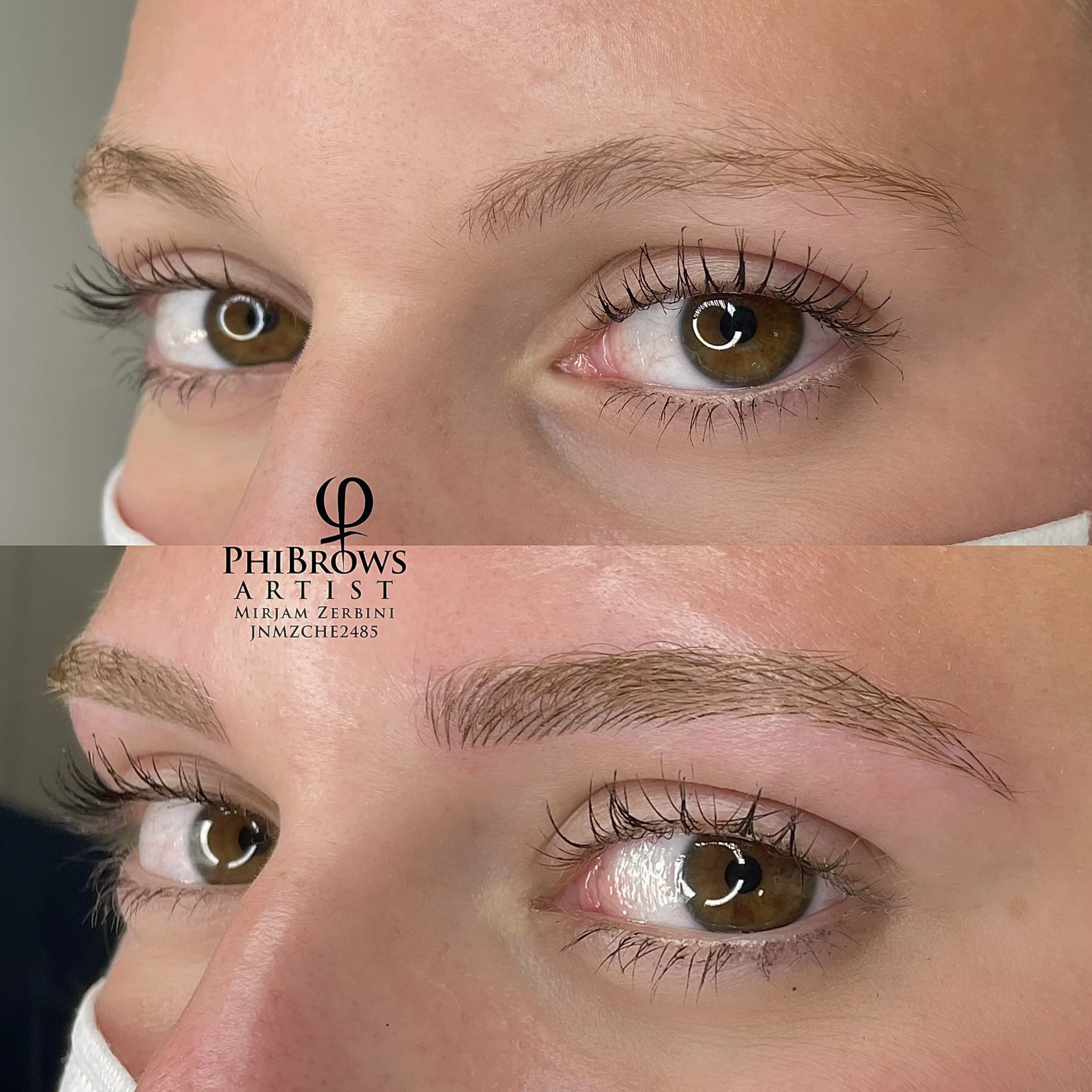Eine echte Zeitersparnis bietet hier Microblading. Die präzise Technik erlaubt ein dauerhaftes Auffüllen kahler Stellen und zaubert feinste Härchen, die von den eigenen später kaum mehr zu unterscheiden sind. In unserem Kosmetikstudio in Luzern arbeiten wir mit der etablierten PhiBrows Microblading Methode, die dir eine besonders natürliche 3D-Härchenzeichnung ermöglicht. Mit sterilen Nadeln, sogenannten Blades, werden deine Augenbrauen mit feinsten Linien im Handumdrehen aufgefüllt und in deine bevorzugte Form gebracht. Ein korrektes Vorzeichnen ermöglicht nicht nur eine Ansicht auf dein Ergebnis vorab, sondern passt sich auch ganz individuell an deine Gesichtskonturen und Symmetrie an.